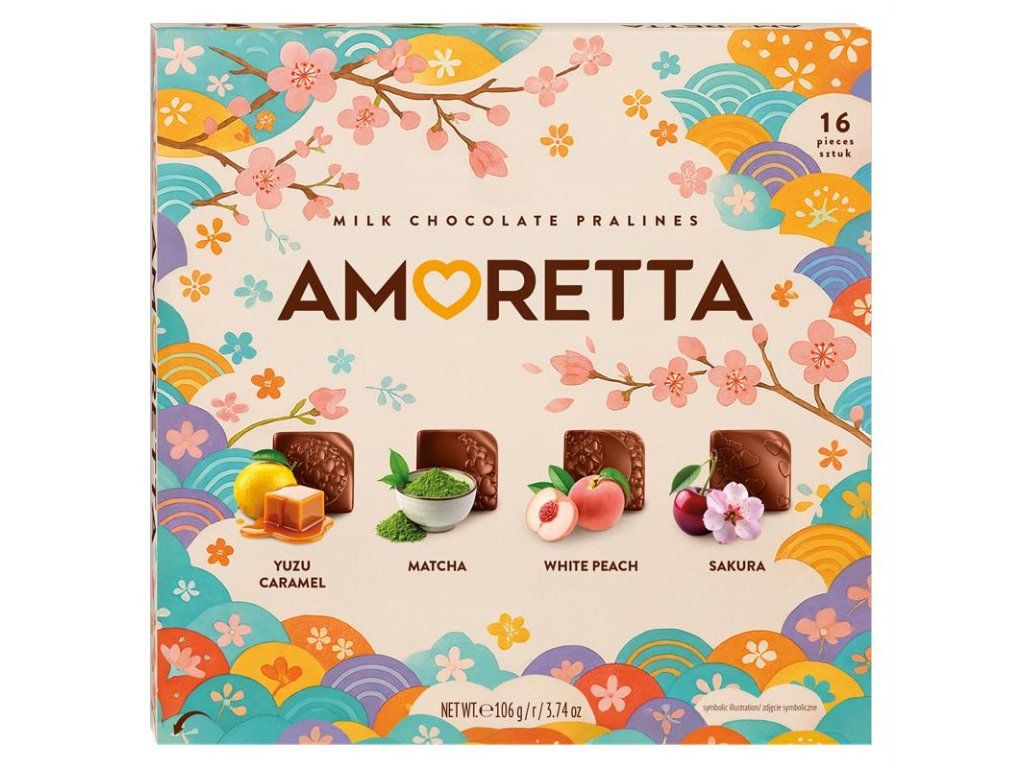 Discover the magic of the Far East with the Amoretta Japan chocolate box. These delicious pralines made of fine milk chocolate conceal unmistakable exotic notes. Ideal as an elegant gift or a sweet treat for special moments.