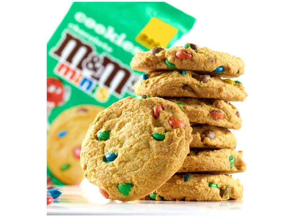 Crunchy cookies with pieces of milk chocolate covered in sugar.
