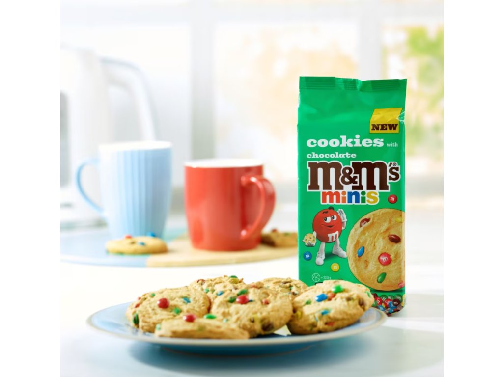 - Sugar coated milk chocolate pieces (25%): sugar, cocoa mass, skimmed milk powder, cocoa butter, whey permeate (milk), milk fat, starch, palm fat, buttermilk fat, glucose syrup, dextrin, emulsifier (soy lecithin E322 ), salt, dyes (E162, E170, E100, E133, E160a), polishing agent (carnauba wax E903), palm kernel oil, aromas.