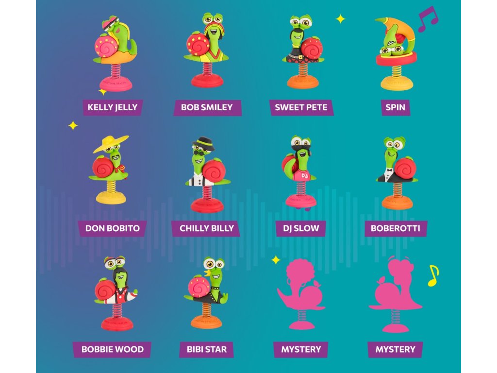 Introducing Bob Snail Play Music Fest - a brand new collection of fun spring-loaded toys. Just touch them and watch them dance!