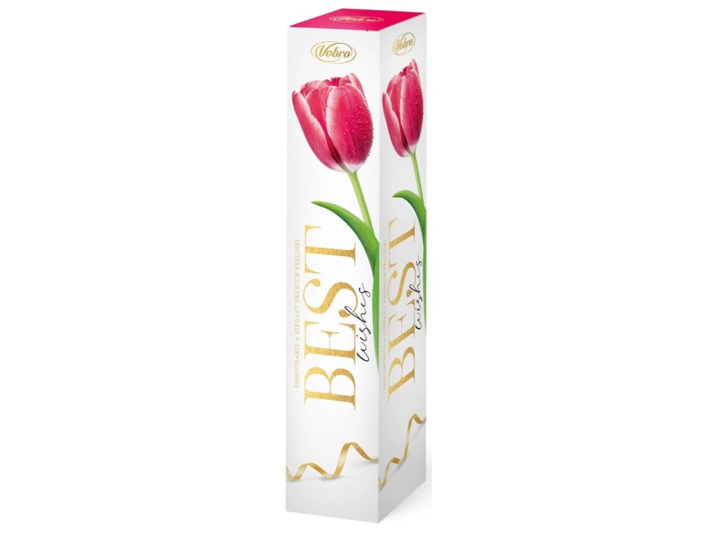 Looking for the perfect little thing that says "thank you," "thinking of you," or "all the best"? Vobro Best Wishes is an elegant mini box full of delicious chocolate pralines that will delight any sweet tooth.